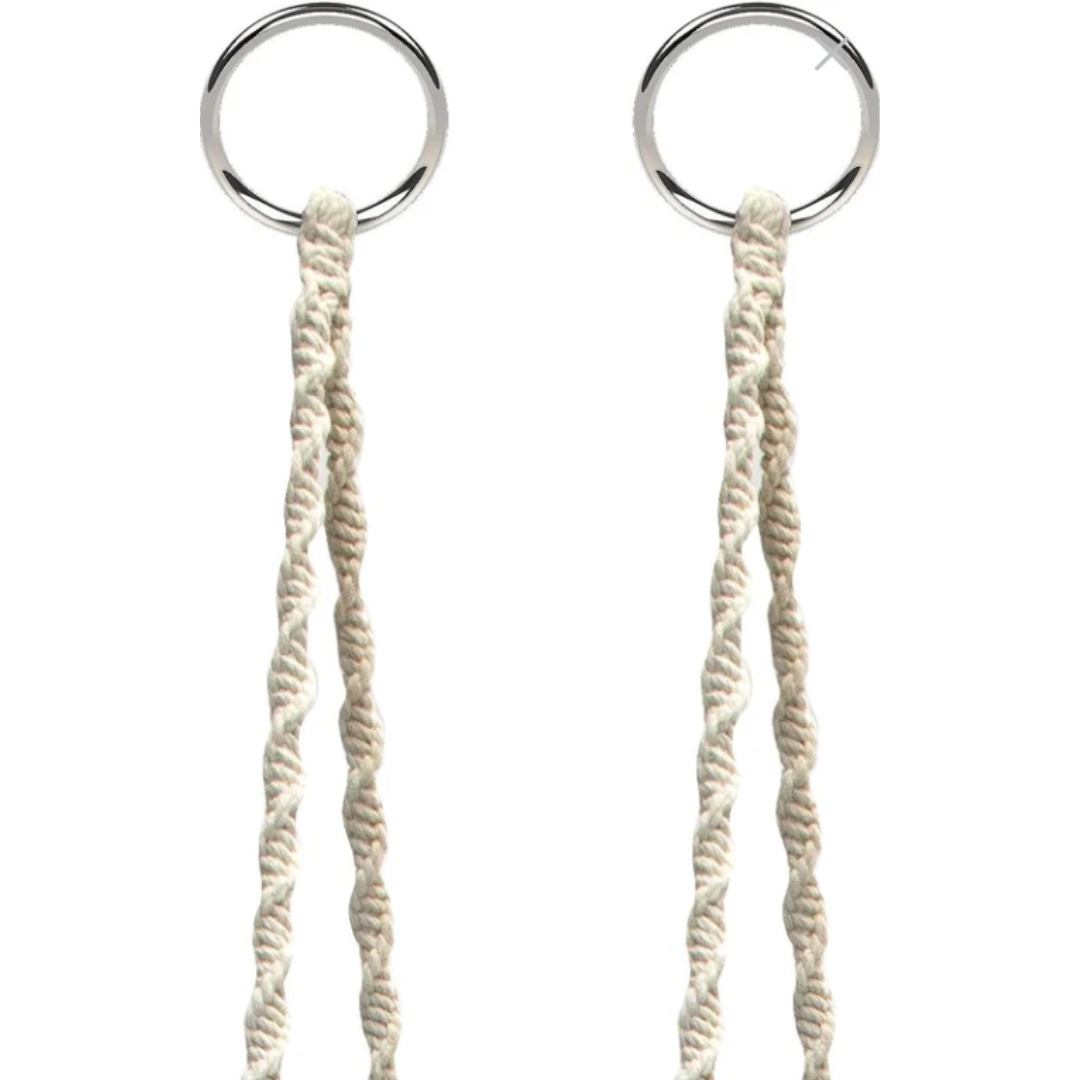 - Въжета: Има 4 въжета с височина 135 см, които се използват за закачане на люлката. Големите халки на връзките осигуряват здраво закрепване и стабилност.