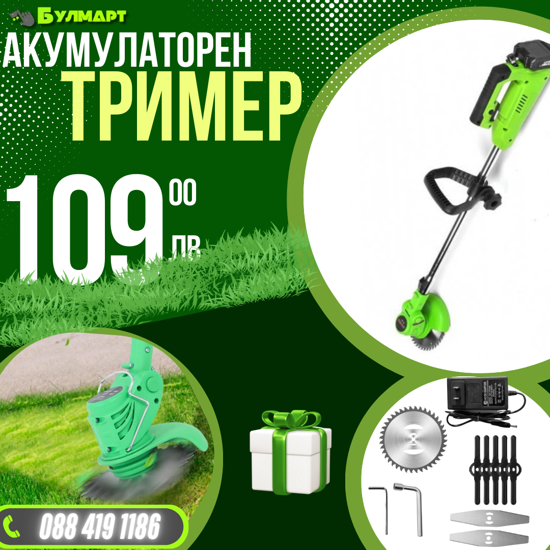 Немски Акумулаторен Тример WerkBull /36V 8Ah/ Косачка за Трева с 2бр батерии + 8 подаръка