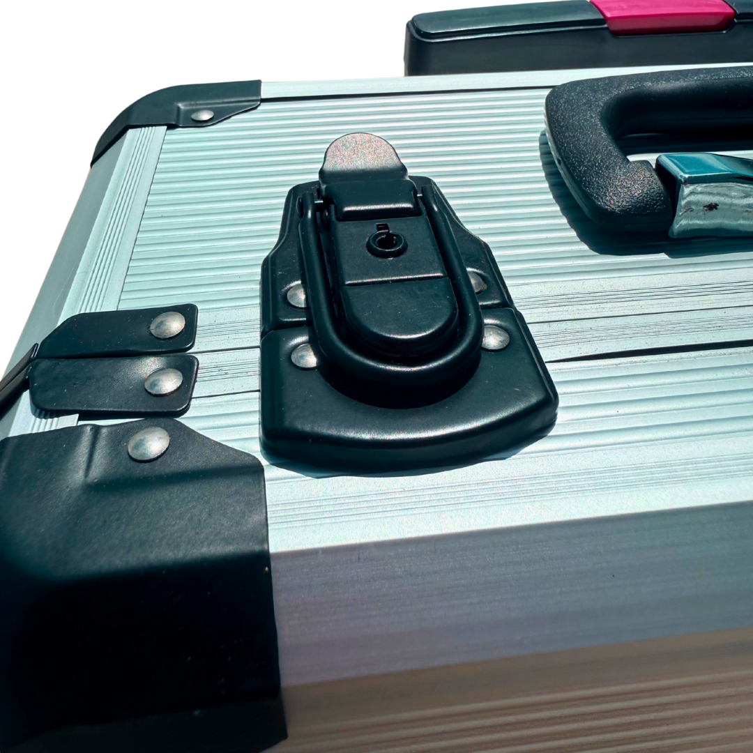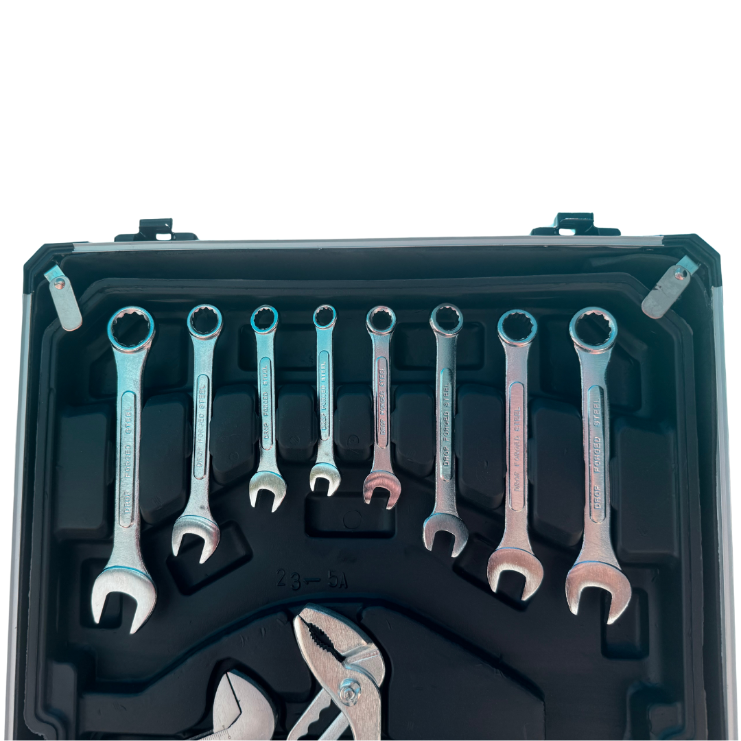 Удобен куфар на колелца, леко, изработено от алуминий, с цели 1050 инструмента от хром-ванадиева стомана.