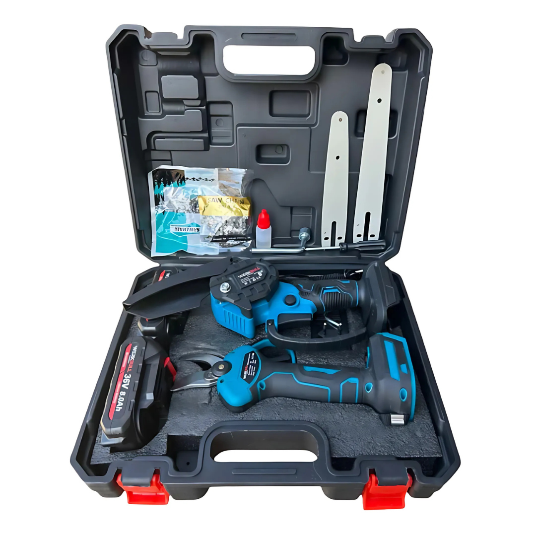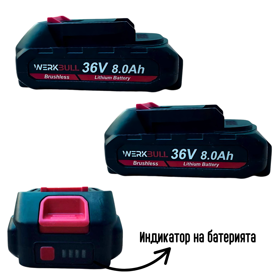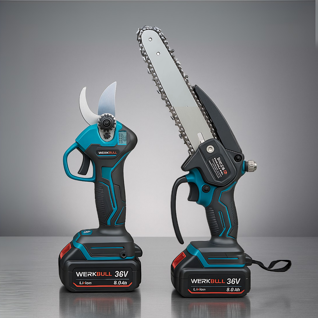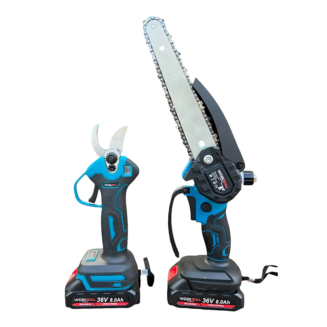 Промо 2в1 комплект WerkBull Акумулаторна Лозарска ножица с дисплей и Мини Трион с автоматично омасляване